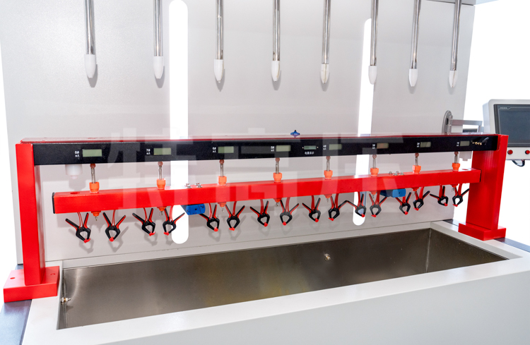 - 3、絕緣鞋試驗(yàn)時(shí),在絕緣鞋里面放置小鋼珠,采用干式試驗(yàn)方法,擺脫了傳統(tǒng)的往鞋子里灌水做試驗(yàn),試驗(yàn)完畢后不易曬干的做法。在水槽的底部放置海綿,將絕緣靴放置在海綿上,水槽內(nèi)的注水采用自動(dòng)注水方式,注水的水位是將海綿浸滿水位為止。