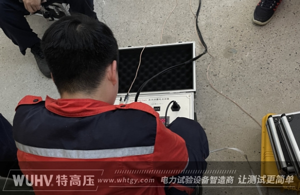 客戶對設(shè)備有了基本了解后,安排試驗人員自行重新接線并進行試驗。在武漢特高壓技術(shù)人員的指導(dǎo)下,接線工作順利完成且無誤,隨后進行了正式的試驗。通過短接方式測試儀器的正常運行狀態(tài),使用了一根能承受2000A電流的電纜,并讓設(shè)備保持輸出2000A的電流,以測量儀器在長時間工作下是否能保持正常運行狀態(tài)。