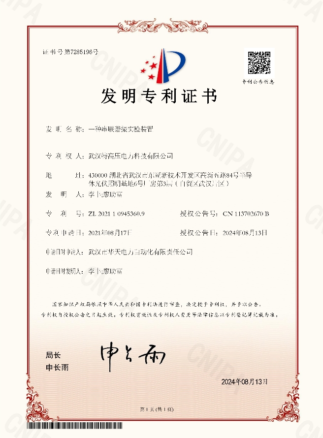 技術(shù)突破!武漢特高壓串聯(lián)諧振專利申請(qǐng)成功