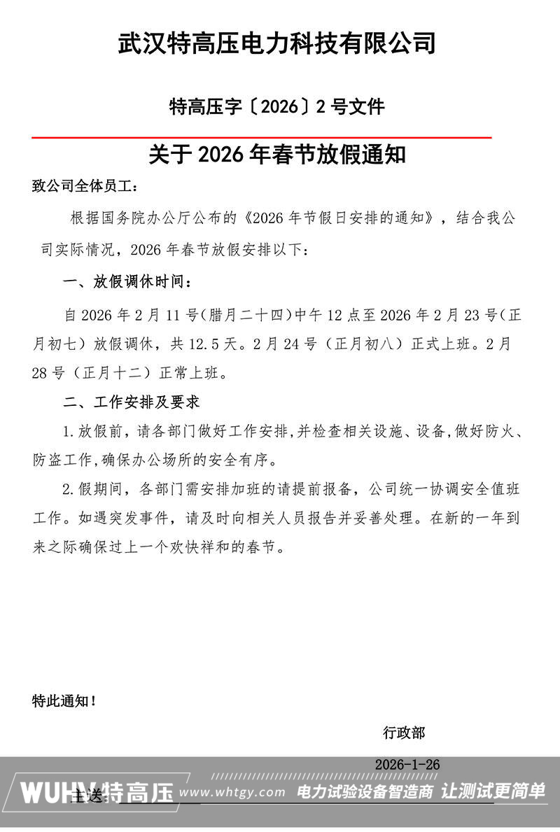 武漢特高壓2026年春節(jié)放假通知!