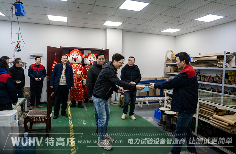 鑼聲余韻未絕,喜慶鞭炮齊鳴,震天聲響驅(qū)散舊歲塵囂,點(diǎn)燃新年奮進(jìn)熱情。儀式現(xiàn)場精心布置吉祥四寶,領(lǐng)導(dǎo)們親手觸摸吉祥果品,將福氣與期許傳遞給每一位特高壓人。