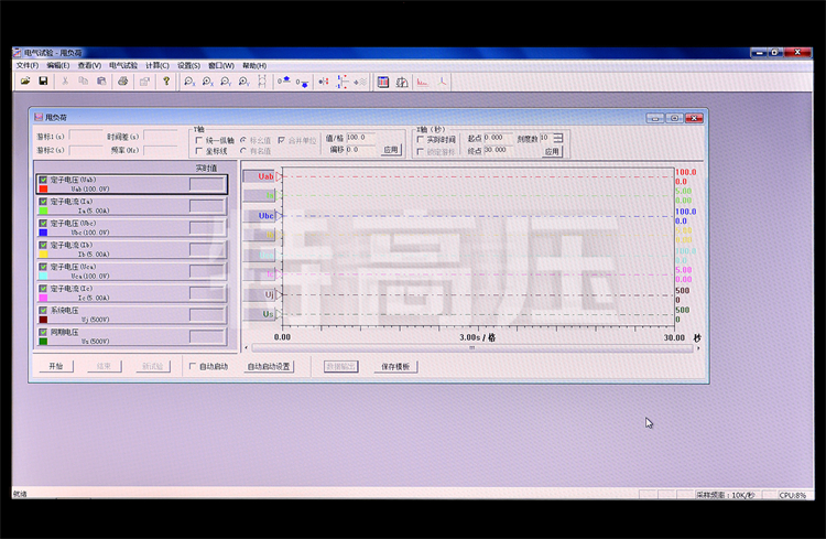 • 2、發(fā)電機(jī)電氣試驗(yàn):多種發(fā)電機(jī)特性測(cè)試試驗(yàn)項(xiàng)目,包括發(fā)電機(jī)空載試驗(yàn)、短路試驗(yàn)、頻率特性、進(jìn)相試驗(yàn)、甩負(fù)荷試驗(yàn)、轉(zhuǎn)子交流阻抗、同期裝置校驗(yàn)等,以及勵(lì)磁調(diào)解器的各項(xiàng)試驗(yàn),例如階躍試驗(yàn)、滅磁試驗(yàn)、零起升壓試驗(yàn)等。